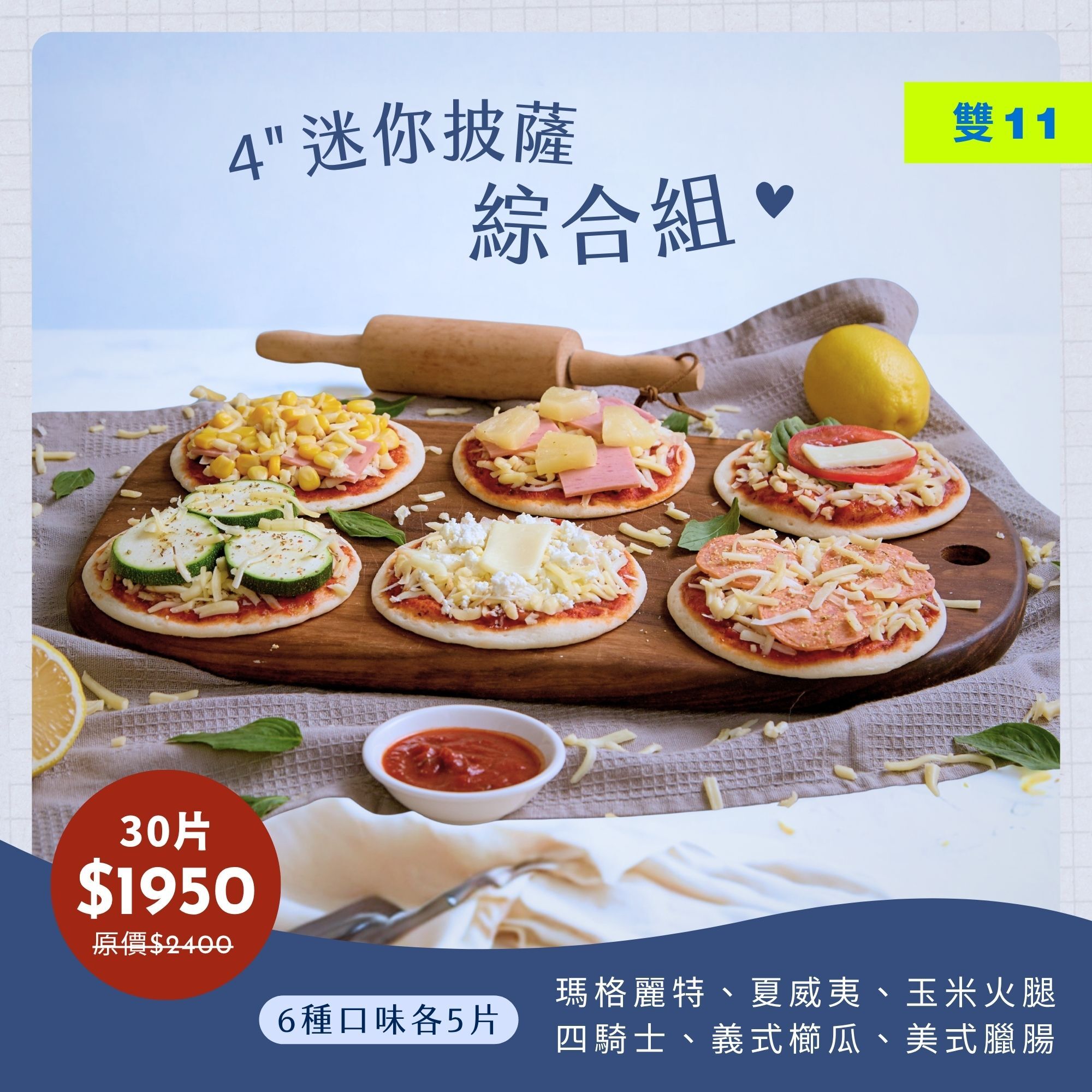 4吋迷你披薩綜合組(30入) 六種口味一次擁有